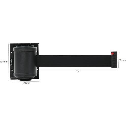 A fali kazetta visszahúzódó szalaggal az ideális hozzáférés kijelölésére, a személyek ideiglenes navigálásához, belépés megakadályozására stb. A szalagok 180°-kal elfordíthatók, a fék lehetővé teszi a lassú és biztonságos behúzást a kazettába. Falra rögzíthető. A szalag az ellendarabba való bedugással vagy a szemközti korlát körüli rácsavarással és speciális összekötő elemmel biztosítható, mindkettő a csomagolás része.
