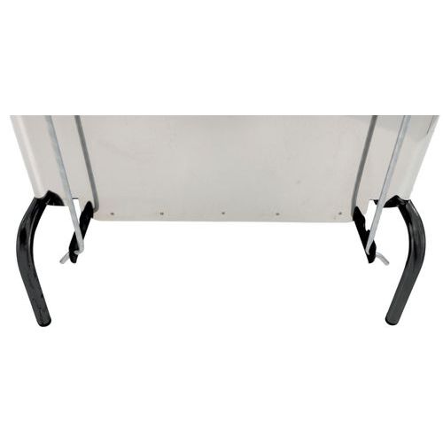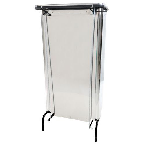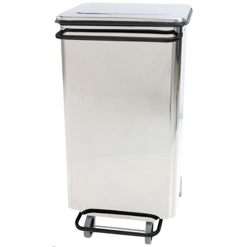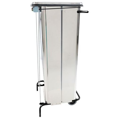 Rozsdamentes acél hulladékgyűjtő, lecsukódó fedéllel. A fedél a HACCP-nek megfelelően könnyen nyitható lábpedállal. Hulladékgyűjtő zsákkal használható. A hulladékgyűjtő fogantyúval és két gumikerékkel van felszerelve a könnyű mozgatás érdekében.