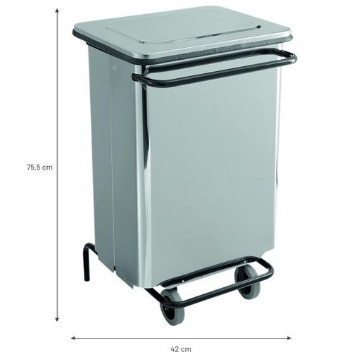 | Termék neve | Manutan Expert fedeles fém hulladékgyűjtő, űrtartalom: 70 l, acél pedál, fényes |