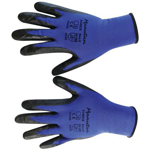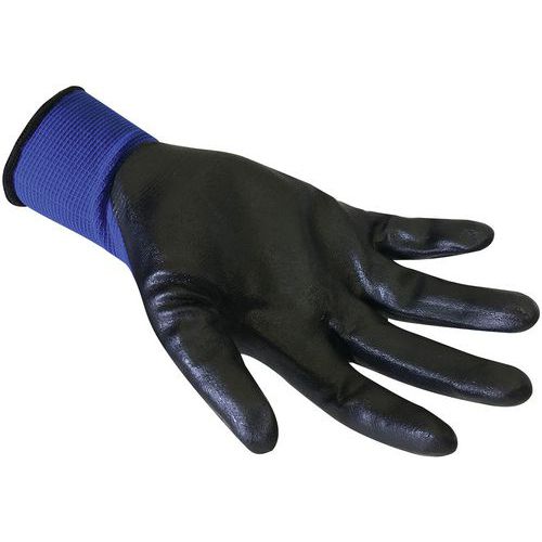 Manutan Expert félig nitrilbe merített nejlon kesztyű, kék/fekete