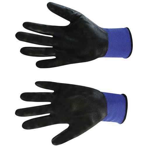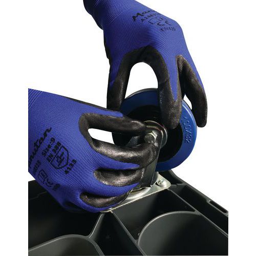 Termék neve Manutan Expert félig nitrilbe merített nejlon kesztyű, kék/fekete, méret: 10