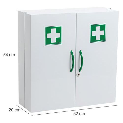 | Termék neve | Manutan Expert fém elsősegély-felszerelés tároló, zárható, 54 x 52 x 20 cm |