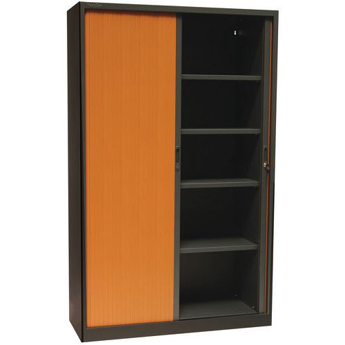Manutan Expert fém iratszekrény, rolós, 4 polccal, 195 x 120 x 45 cm, antracit/cseresznye