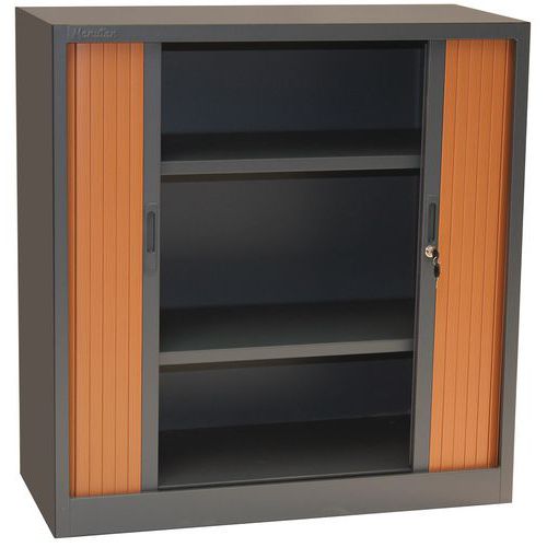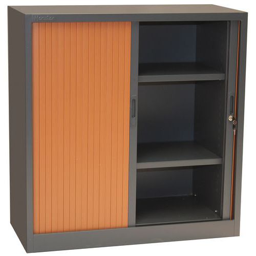 Manutan Expert fém iratszekrény, rolós, 2 polccal, 105 x 100 x 45,7 cm, antracit/cseresznye