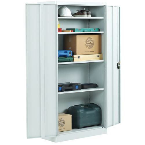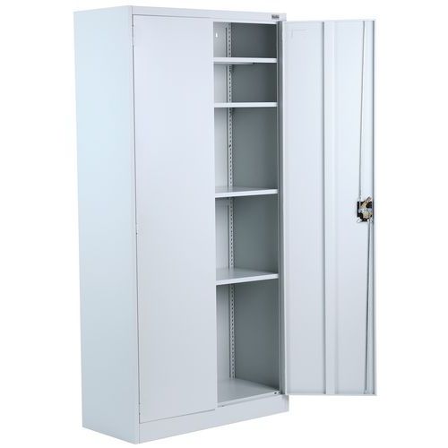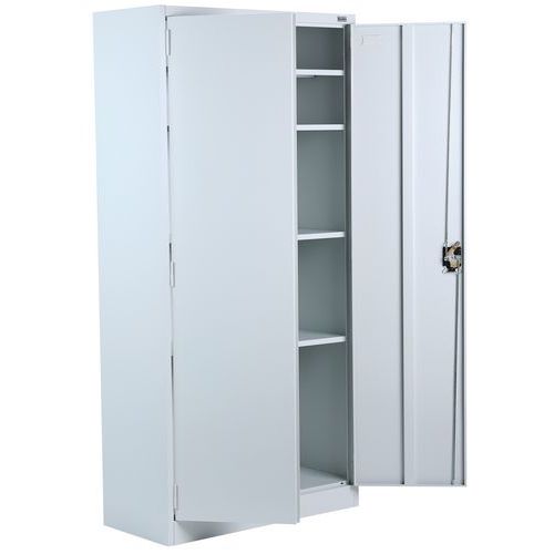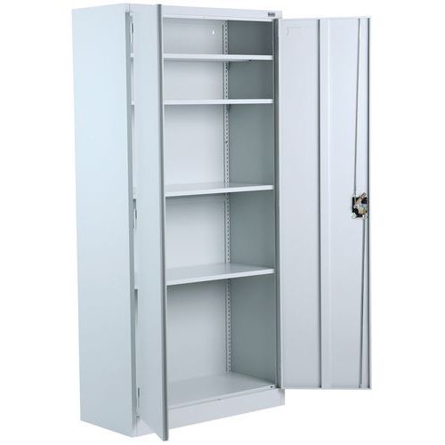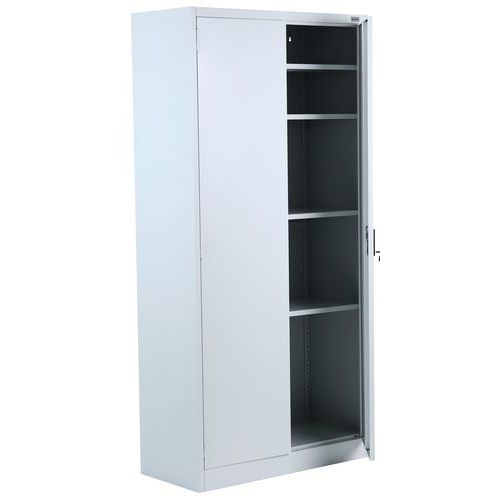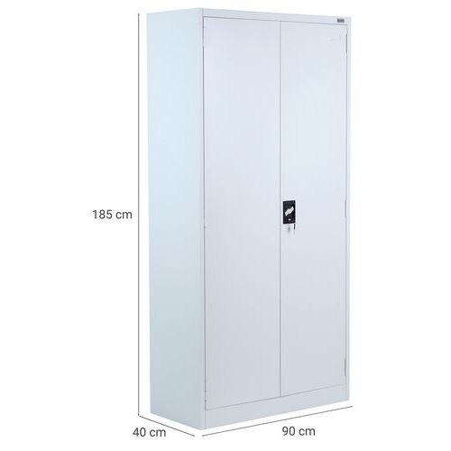 Magas irodai szekrény dokumentumok és iratrendezők tárolására. Külső csuklópántos ajtók, hengerzárral. Felületkezelés porszórással. Az irattartó szekrény talapzaton áll. Hőmérsékletállóság - 30 és +220 ℃ között. Szerelés : Szereléshez Max. polcterhelés (kg) : 40 kg Max. terhelés (kg) : 200 kg