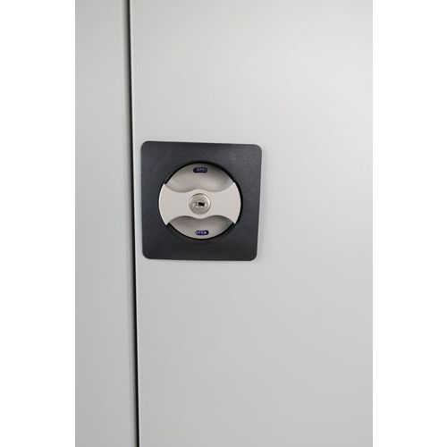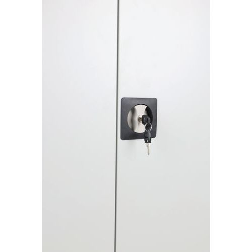 A két polcos műhelyszekrények acéllemezből készülnek. A fémszekrények hátfala perforált panellel van felszerelve, a szerszámtartók és az anyagtárolók dobozok rögzítésére (72 + 8 db). A lemez szekrények kétpontos, hengerzárral felszerelt zárszerkezettel zárhatók. Az ajtónyílási szög 180 °. A polcok 3,6 cm-es lépésközben állíthatók. Lemezből gyártva, melynek vastagsága 0,9 mm. Gyártói garancia az ügyfélnek : 10 év