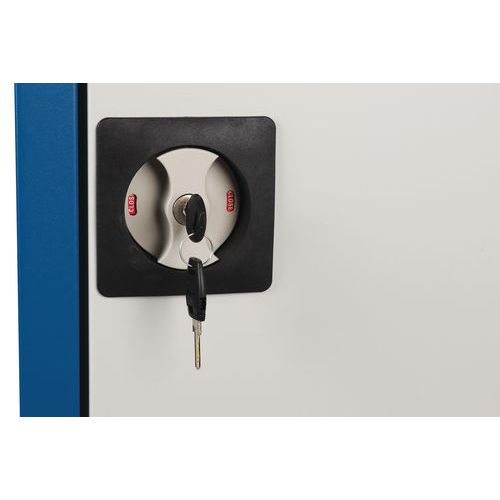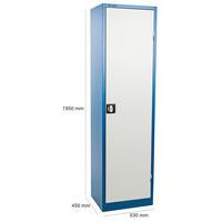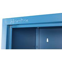 Hegesztett acéllemez szekrények akár 180°-os ajtónyitással, elsősorban műhelyekbe és raktárakba.