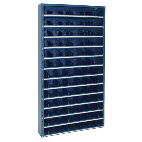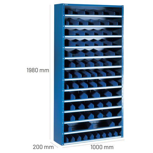 Manutan Expert fém polcállvány, osztórészekkel, 198 x 100 x 20 cm, 12 polccal, kék