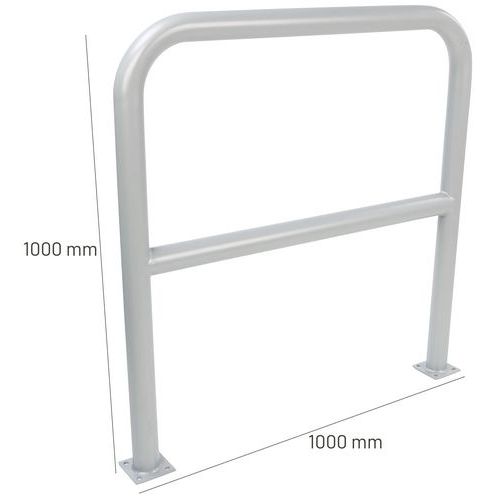 Fém biztonsági korlátok alkalmasak területek, parkolók és műhelyeken belüli objektumok elkerítésére. Acélcsőszerkezet. Rögzítés a négyzet alakú alapzat lecsavarozásával. Rozsdának és külső hatásoknak ellenálló felületkezelés (sóköd teszt).