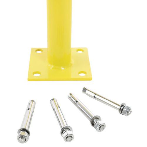 Fém biztonsági korlátok négy színkivitelben. Alkalmasak területek, parkolók és műhelyeken belüli objektumok elkerítésére. 38 mm átmérőjű acél cső szerkezet. Rögzítés a négyzet alakú alapzat lecsavarozásával. Rozsdának és külső hatásoknak ellenálló felületkezelés (sóköd teszt).