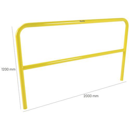 Biztonsági korlátok négy színkivitelben. Alkalmasak területek, parkolók és műhelyeken belüli objektumok elkerítésére. 59 mm átmérőjű acél cső szerkezet. Földhöz való rögzítés bebetonozással. Rozsdának és külső hatásoknak ellenálló felületkezelés (sóköd teszt).