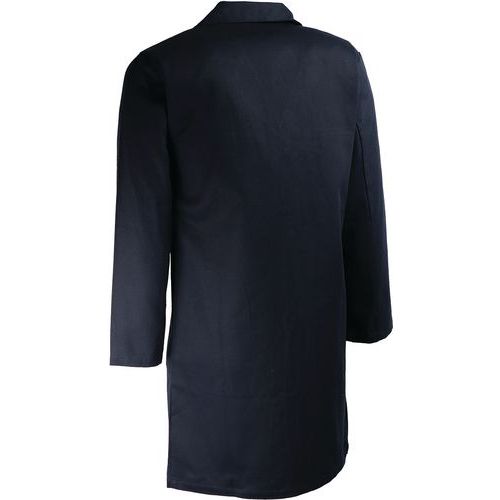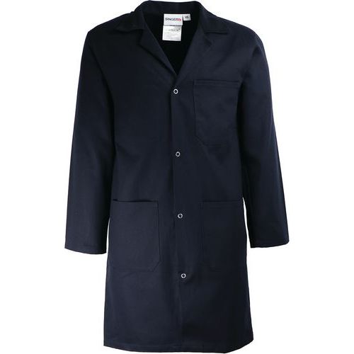 Férfi kék pamut munkaköpeny, hosszú ujjú. Két nagy elülső zseb a kisebb tárgyak tárolására. Gyors bekapcsolás és kikapcsolás kapcsoknak köszönhetően. Gyártói garancia az ügyfélnek : 3 év