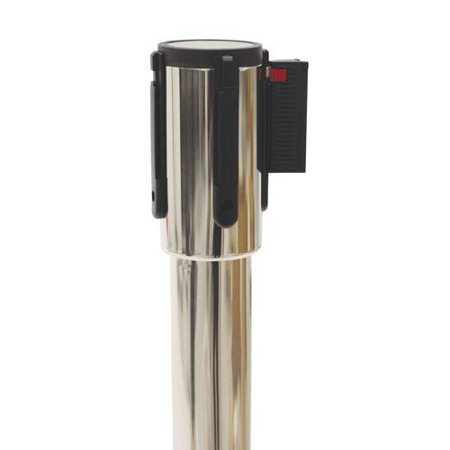 Torlaszoló oszlopok kihúzható, 2 m hosszú rugalmas szalaggal, ideálisak a hozzáférés meghatározására, személyek ideiglenes navigálására, belépés megakadályozására stb.