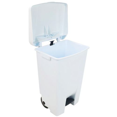 Műanyag szemetes kosarak színes fedővel, alkalmasak élelmiszeripari üzemekbe. A kosarak két kerékkel és fogantyúval rendelkeznek a hátoldalon. Higiénikus fedőnyitás pedállal a kosár elülső oldalán. Gyártói garancia az ügyfélnek : 10 év HACCP rendszer