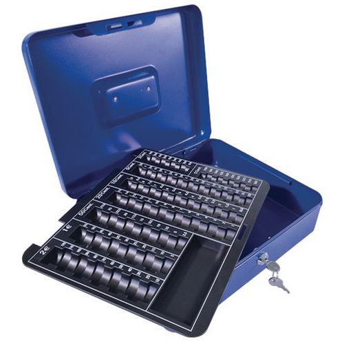 Manutan Expert hordozható pénzkazetták EUR érmetartóval, kék Manutan Expert hordozható pénzkazetták EUR érmetartóval, kék