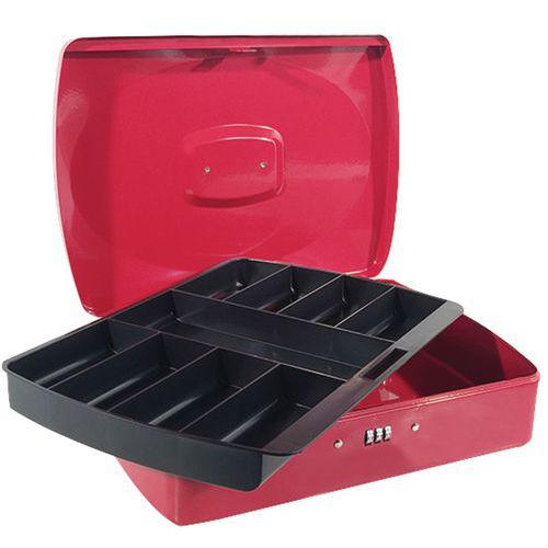 Manutan Expert hordozható pénzkazetta kódzárral, 9 rekesszel, piros Manutan Expert hordozható pénzkazetta kódzárral, 9 rekesszel, piros