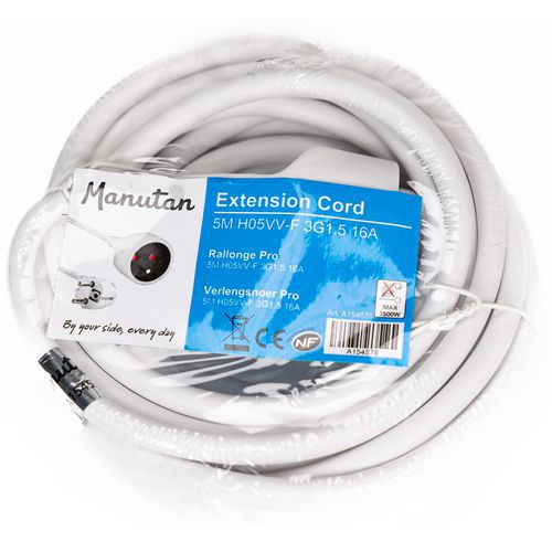 5 vagy 10 méter hosszú hosszabbító kábelek A hosszabbítók egy csatlakozóaljzattal rendelkeznek otthoni használatra. intenzitás: 16 A kimenetek száma: 1 a kábel hossza: 5 – 10 m kábel típusa: H05VV-F színe: fehér