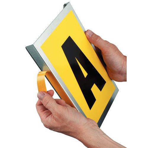 Öntapadó információs panelek, alkalmasak polcállványok megjelölésére raktárakban, könyvtárakban stb. Polcállványhoz való rögzítés kétoldalas ragasztószalaggal a panel oldalán. A panel felülete nem mágneses.