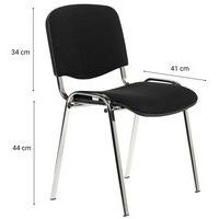 A tárgyalószék szövettel kárpitozva hét lehetséges színkivitelben. A konferenciaszék előnye, hogy 10 db-ig egymásra rakható. A tárgyalószék teherbírása 100 kg. az ülőlap színe: antracit, fekete, piros, barna, kék, szürke, zöld a háttámla színe: antracit, fekete, piros, kék, szürke, zöld a szerkezet színe: króm az ülőlap anyaga: textil a háttámla anyaga: textil a szerkezet anyaga: krómozott acél teherbírás: 100 kg az ülőlap méretei szé x mé: 47,5 x 41,5 cm az ülőlap magassága: 47 cm a háttámla magassága: 33,5 cm rakásolhatóság: igen, max. 10 db rakásolhatóság: igen tartósság: standard (30 000 ciklus) csomagolás: 1 db a hátsó borítások és az ülőlap alsó része műanyag Gyártói garancia az ügyfélnek : 10 év