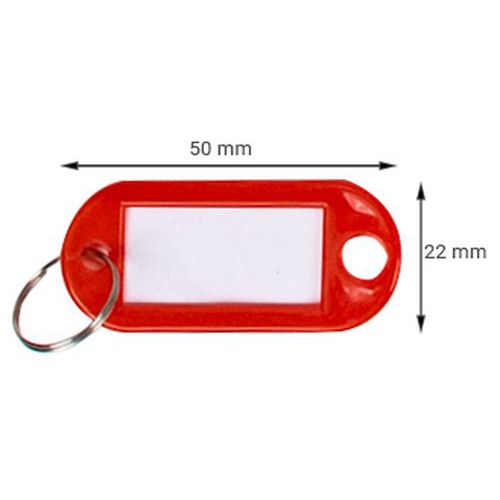 Praktikus kulcstartó különböző színben, fém karikával. A csomagolás 100 darab kulcstartót tartalmaz. méretek: 5 x 2,2 x 0,3 cm színe: piros, zöld, fekete, sárga, kék