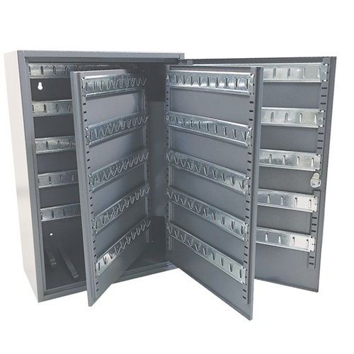 Zárható acél szekrények szögletes kivitelben 300 kulcs tárolására. A szekrény két válaszfalat tartalmaz. Színes kulcstartókkal együtt szállítjuk.