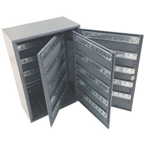 Zárható acél szekrények szögletes kivitelben 300 kulcs tárolására. A szekrény két válaszfalat tartalmaz. Színes kulcstartókkal együtt szállítjuk.