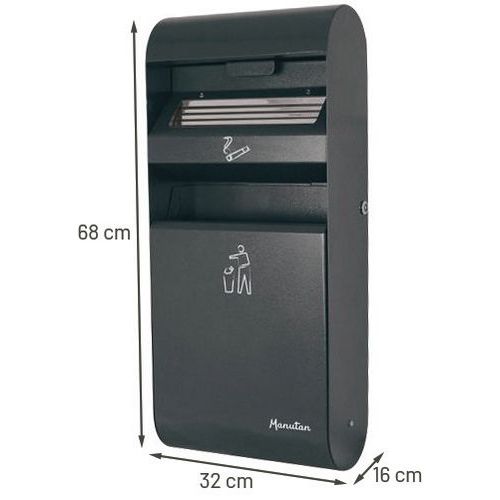 | Termék neve | Manutan Expert kültéri felakasztható fém szemetes kosár hamutartóval, űrtartalom 14 l |