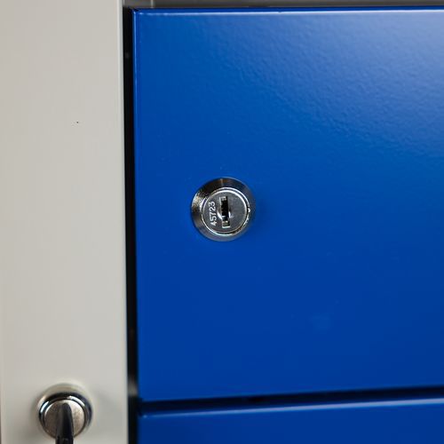 | Termék neve | Manutan Expert Lukas hegesztett rekeszes szekrény, 1 rész, 5 rekesz, hengerzár, szürke/kék |