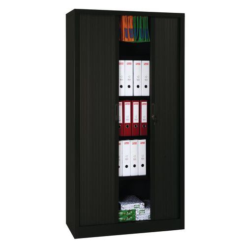 Manutan Expert magas redőnyös irattartó fém szekrény, 198 x 100 x 45 cm, fekete Manutan Expert magas redőnyös irattartó fém szekrény, 198 x 100 x 45 cm, fekete