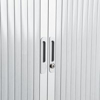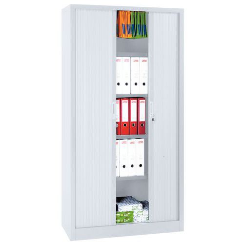 A magas redőnyös irattartó szekrény elegendő helyet biztosít mappák, prospektusok és irodai dokumentumok tárolására. Csendes redőnyös ajtó mágneses zárral. Négy állítható magasságú polccal. A polcok maximális terhelhetősége egyenként 60 kg. A szekrény zárható. Egyszerűen, szerszám nélkül összeszerelhető.