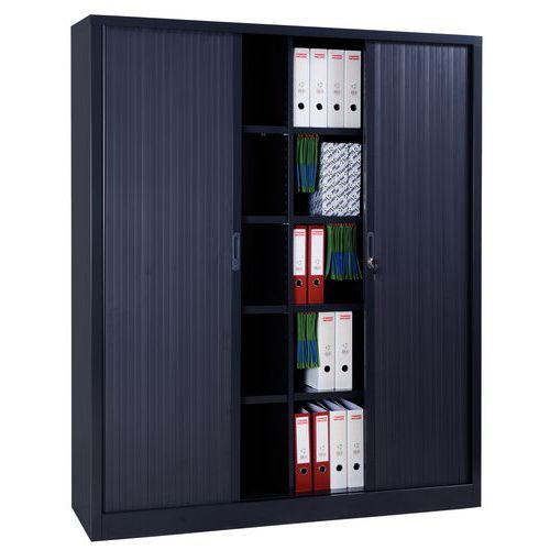 A tágas redőnyös irattartó szekrények elegendő helyet biztosítanak mappák, prospektusok és irodai dokumentumok tárolására. Csendes redőnyös ajtó mágneses zárral. 4 x 4 állítható magasságú polccal. A polcok maximális terhelhetősége egyenként 100 kg. A szekrény zárható. A fokozott stabilitás érdekében a szekrény a falhoz rögzíthető.