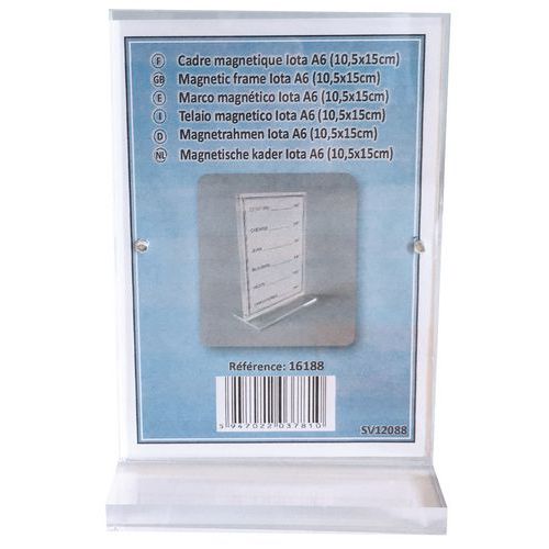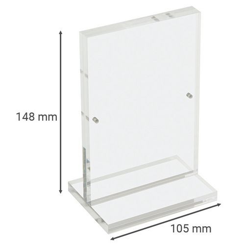Akril T-állvány szórólapok, információk, ebédmenü közlésére, fotókhoz, stb. Álló tájolású. Az iratok egyszerűen a műanyag táblák közé helyezhetők, s erősen rögzíthetők a mágneses pontok segítségével.