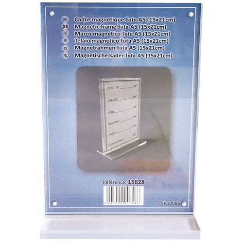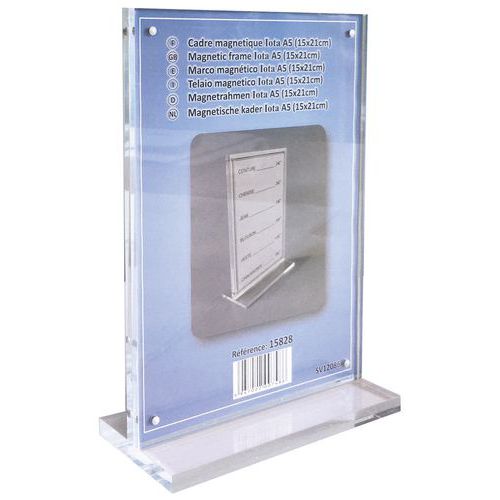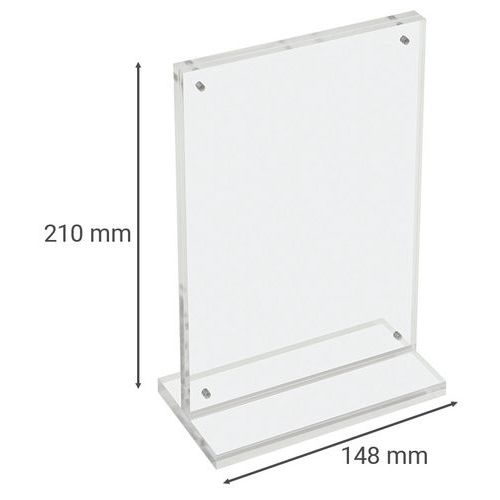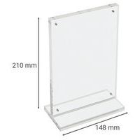 Akril T-állvány szórólapok, információk, ebédmenü közlésére, fotókhoz, stb. Álló tájolású. Az iratok egyszerűen a műanyag táblák közé helyezhetők, s erősen rögzíthetők a mágneses pontok segítségével.