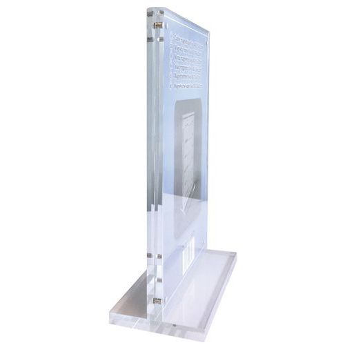 Akril T-állvány szórólapok, információk, ebédmenü közlésére, fotókhoz, stb. Álló tájolású. Az iratok egyszerűen a műanyag táblák közé helyezhetők, s erősen rögzíthetők a mágneses pontok segítségével. Gyártói garancia az ügyfélnek : 10 év
