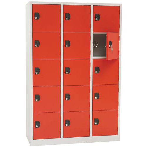 Manutan Expert Mike hegesztett öltözőszekrény, 15 rekeszes, hengerzár, szürke/piros