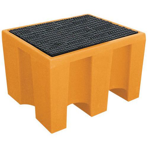 Műanyag felfogó kádak műanyag vagy horganyzott ráccsal. Polietilénből készül és vízre veszélyes anyagok és gyúlékony folyadékok tárolására alkalmas. Ellenálló mechanikus igénybevétellel, a korrózióval és a vegyszerek többségével szemben. Alakilag stabil, könnyen mozgatható raklapos vagy villás targonca segítségével.