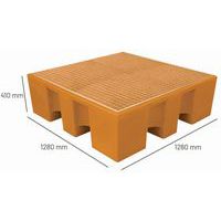 Műanyag felfogó kádak műanyag vagy horganyzott ráccsal. Polietilénből készül és vízre veszélyes anyagok tárolására alkalmas. Ellenálló mechanikus igénybevétellel, a korrózióval és a vegyszerek többségével szemben. Alakilag stabil, könnyen mozgatható raklapos vagy villás targonca segítségével.
