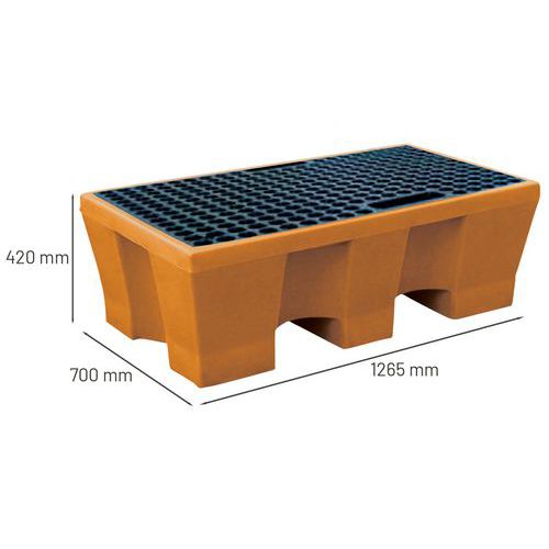 Manutan Expert műanyag felfogókád fém ráccsal, 2 hordóhoz, űrtartalom 240 l Manutan Expert műanyag felfogókád fém ráccsal, 2 hordóhoz, űrtartalom 240 l