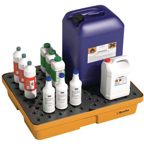 Műanyag felfogó kádak a vízre veszélyes anyagok és éghető anyagok tárolására. Nagyon ellenálló HDPE anyagból készültek, alacsony tömegűek és alakilag stabilak. Elérhető többféle méretváltozatban műanyag ráccsal vagy rács nélkül.
