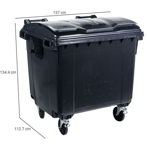 Műanyag hulladékgyűjtők szeméttároló fedéllel több színkivitelben. Nagy sűrűségű polietilénből készül UV-sugárzás elleni stabilizálással. A könnyű használatról négy 200 mm átmérőjű kerék gondoskodik, melyek közül kettő fékezhető. A konténerek praktikus fogantyúkkal rendelkeznek három oldalon.