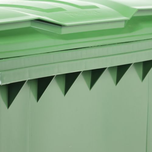 Műanyag szeméttároló konténerek fedéllel több színkivitelben. Nagy sűrűségű polietilénből készül UV-sugárzás elleni stabilizálással. A könnyű használatról négy 200 mm átmérőjű kerék gondoskodik, melyek közül kettő fékezhető. A konténerek praktikus fogantyúkkal rendelkeznek három oldalon.