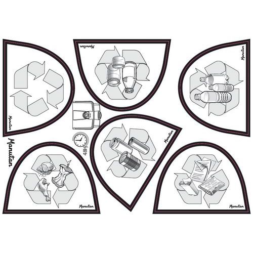 Pedálos műanyag szemetes kosarak sima felülettel a könnyű tisztításért. A csomagolásban szelektív hulladékgyűjtés megjelőlésére szolgáló matricák is találhatók. Négy színből választhat.