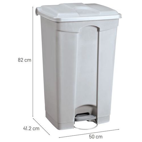 Pedálos műanyag szemetes kosarak sima felülettel a könnyű tisztításért, görgőkkel és a felborulást megakadályozó stabilizátorral.