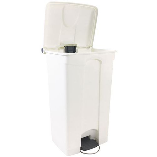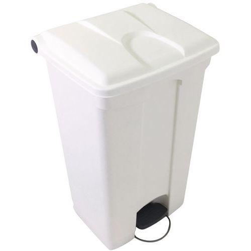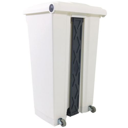 Pedálos műanyag szemetes kosarak sima felülettel a könnyű tisztításért, görgőkkel és a felborulást megakadályozó stabilizátorral.