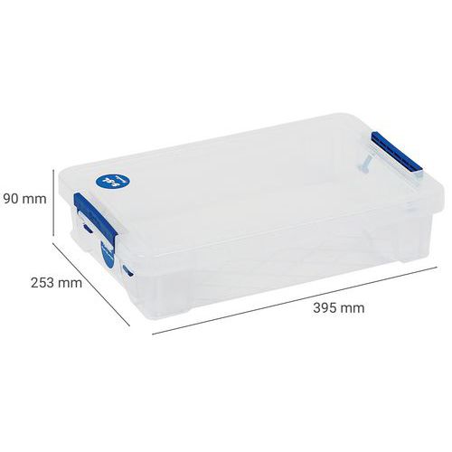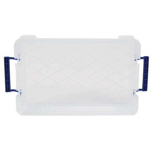 Átlátszó műanyag dobozok tárgyak és iratok tárolására. A fogantyún műanyag zárócsat található. Az átlátszó kialakítás lehetővé teszi a doboz tartalmának azonnali áttekintését. Max. terhelés (kg) : 120 kg Gyártói garancia az ügyfélnek : 10 év