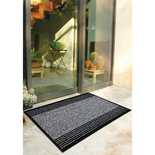 Beltéri, fokozott nedvszívó lábtörlő szőnyeg 5 l/m2 nedvszívó képességgel. Alkalmas beltéri és fedett kültéri elhelyezésre egyaránt. 50%-ban mikroszálas és 50%-ban polipropilén anyagból készült. A csúszásgátló PVC alátét megakadályozza a lábtörlő csúszkálását.