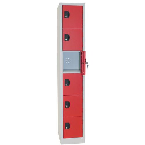 Manutan Expert Nicolas hegesztett öltözőszekrény, 6 rekeszes, hengerzár, szürke/piros