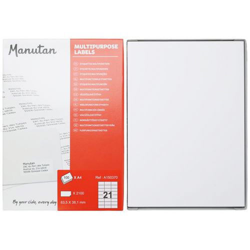 Univerzális öntapadós címkék nyomtatáshoz, gyorsan száradó. méretek h x sz: 3,8-29,7 x 2,1-21 cm színe: fehér csomagolás: 100 ív