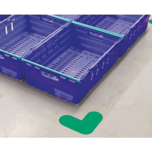 A padlójelölések egyszerű és előnyös megoldást jelentenek a raktárakban és gyártóüzemekben történő jelölésre. Az ellenálló jelölés a mindennapi üzemben az átjáró utakat, raklaptároló helyeket vagy raklapszállító kocsik útvonalát jelölheti. A három színkivitelű „L“ alakú jelölés poli-vinil-kloridból készült, és erős, csúszásgátló ragasztófelülettel van ellátva.