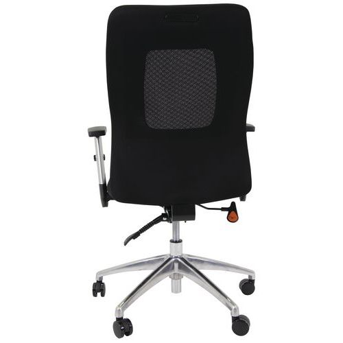 Az irodai székek anatómiailag formázott textil üléssel, hálós háttámlával és műanyag keresztléccel vannak ellátva.